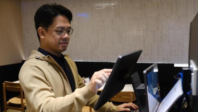 潘家傑在操作收銀系統。