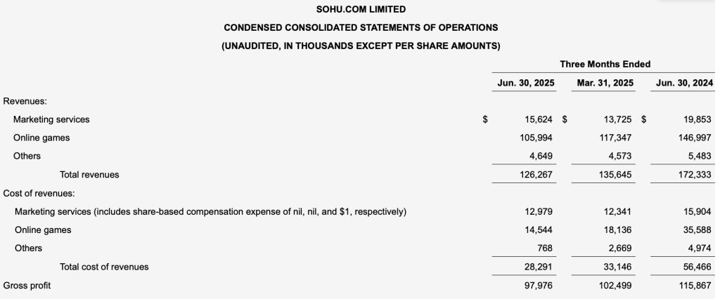 搜狐創始人、董事局主席兼首席執行官張朝陽在財報中指出,2025年第二季度,公司行銷服務收入符合此前預期,線上遊戲收入和集團淨虧損均達此前最佳預期。
