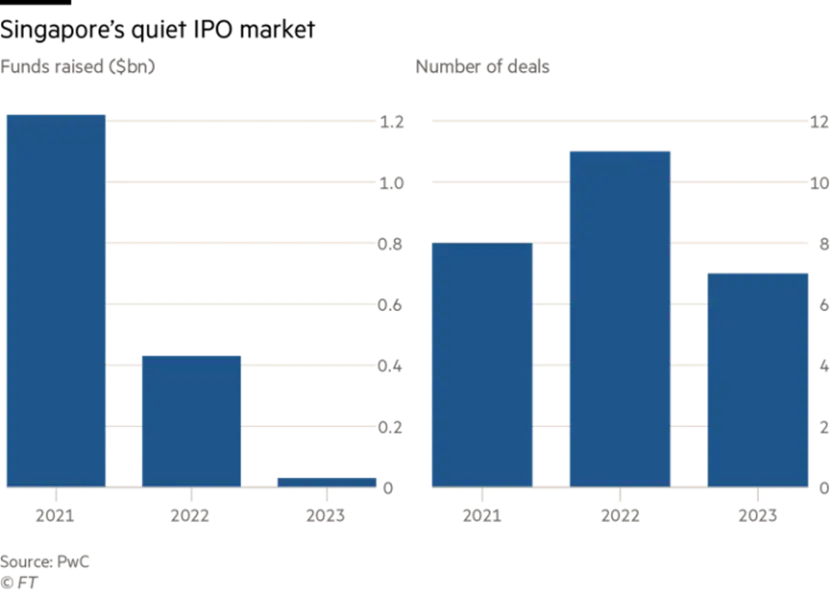由於交易量低迷、IPO數量減少和近年來的一系列退市事件,新加坡交易所正面臨著前所未有的挑戰。根據普華永道的研究,該交易所在去年的IPO數量和籌資額方面均處於全球範圍內較低水準,僅有7宗IPO交易。今年上半年,新加坡交易所的IPO數量更是僅有1家。