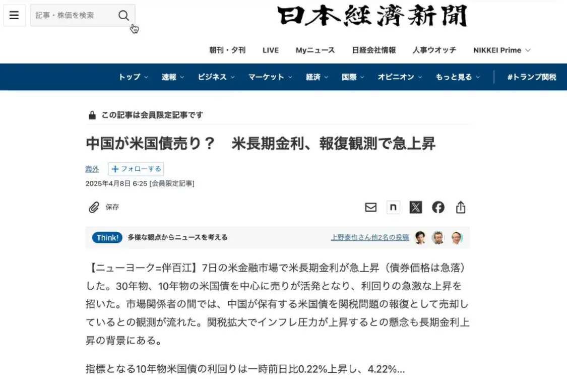 《日本經濟新聞》引述市場人士觀點稱,中國可能正在拋售持有的美國國債。