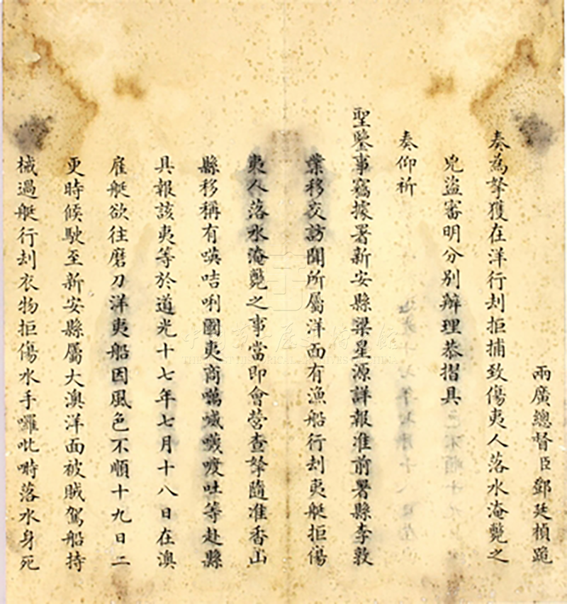 兩廣總督鄧廷楨為拿獲打劫夷船凶盜事奏摺