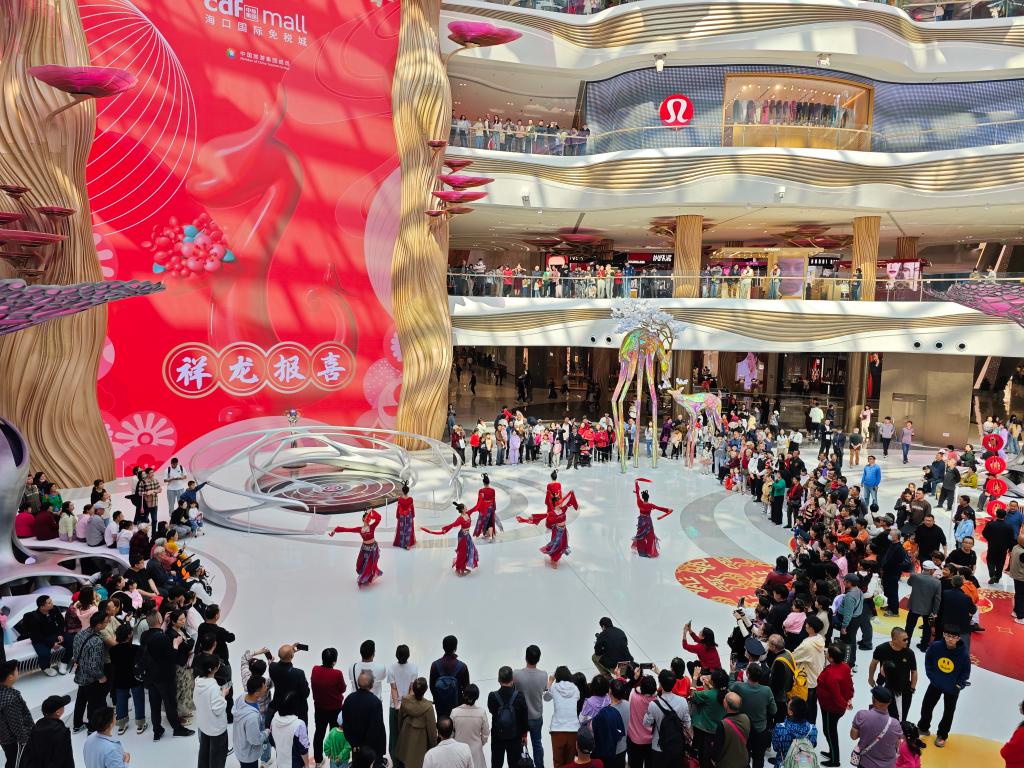 春節期間,在全球最大單體免稅店——海口國際免稅城內,耍龍燈、醒獅采青、古典舞表演等豐富多樣的新春文旅活動輪番上演,讓消費者在樂享免稅購物的同時感受熱鬧喜慶的氛圍和濃濃的年味。