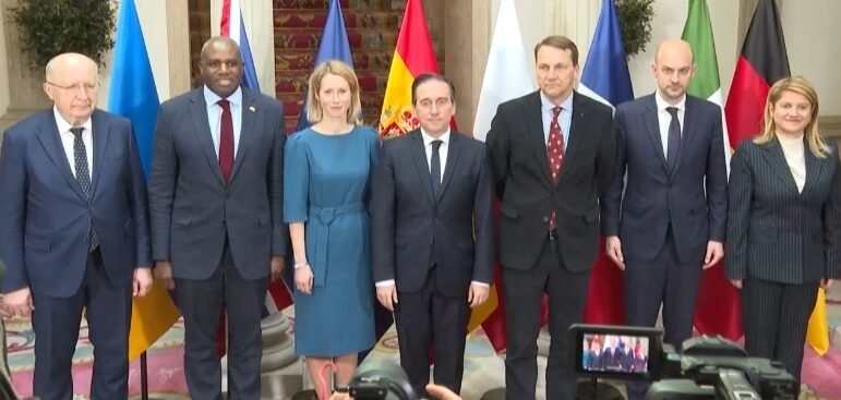 當地時間3月31日,法國、德國、義大利、西班牙、英國、波蘭六國外長與歐盟外交和安全政策高級代表卡拉斯在西班牙馬德里共同發表聯合聲明稱,將增加對烏克蘭的軍事、政治和人道主義支持<strong><b>。</b></strong> <img class="alignnone size-full wp-image-50721" src="http://skyeconews.com/wp-content/uploads/2025/04/30-3-e1743491233234.jpg" alt="" width="771" height="367" /> 聲明稱,準備進一步向俄羅斯施加壓力,包括實施新制裁,確保烏克蘭處於“實現公正和持久和平的優勢方”。聲明還強調,不會接受任何旨在限制烏克蘭國防工業或夥伴國在烏克蘭領土上軍事存在的協議。 來源:中國央視新聞