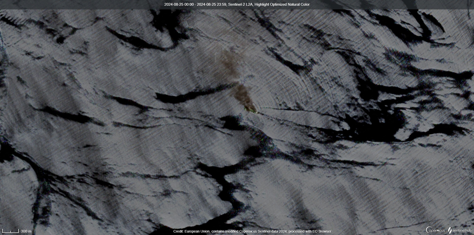 歐洲航天局哥白尼2號衛星拍攝的衛星圖像顯示,在最後一次探測到蘇尼翁的附近海域,煙霧清晰可見。