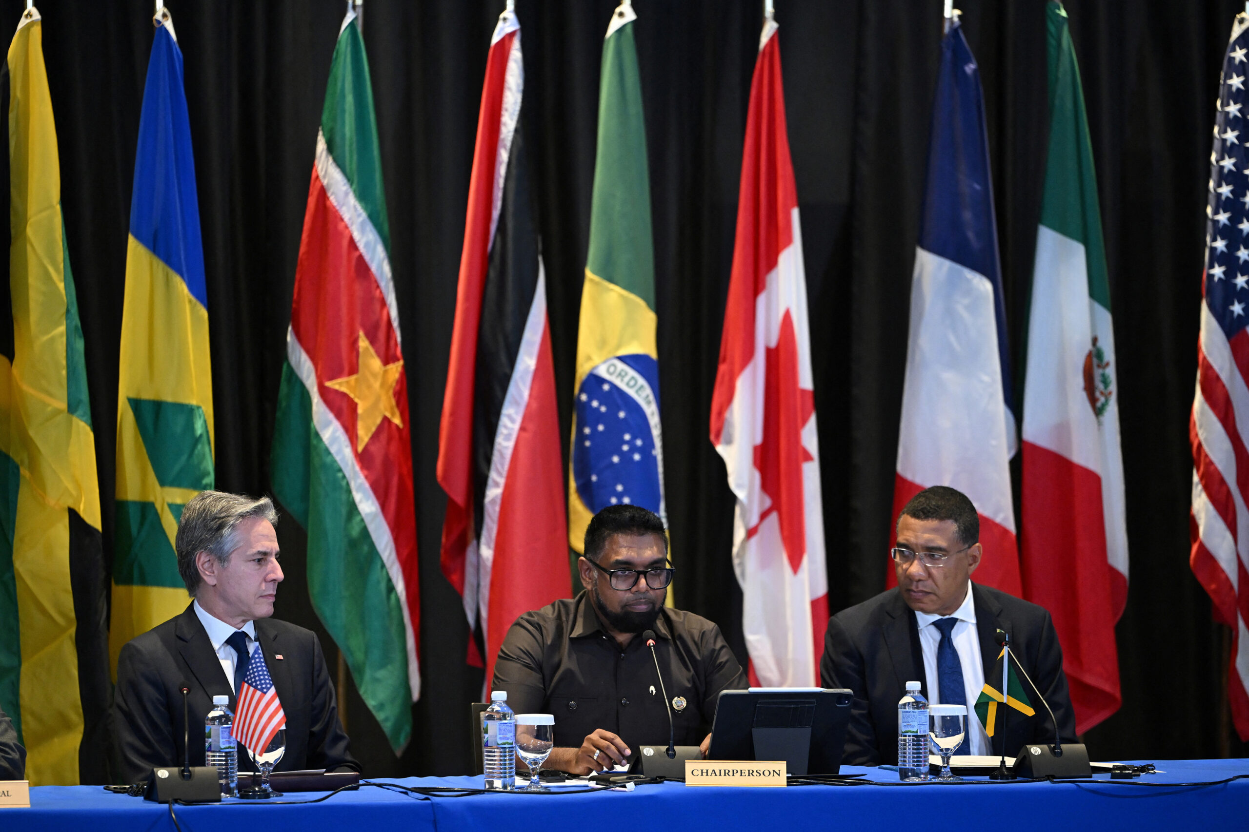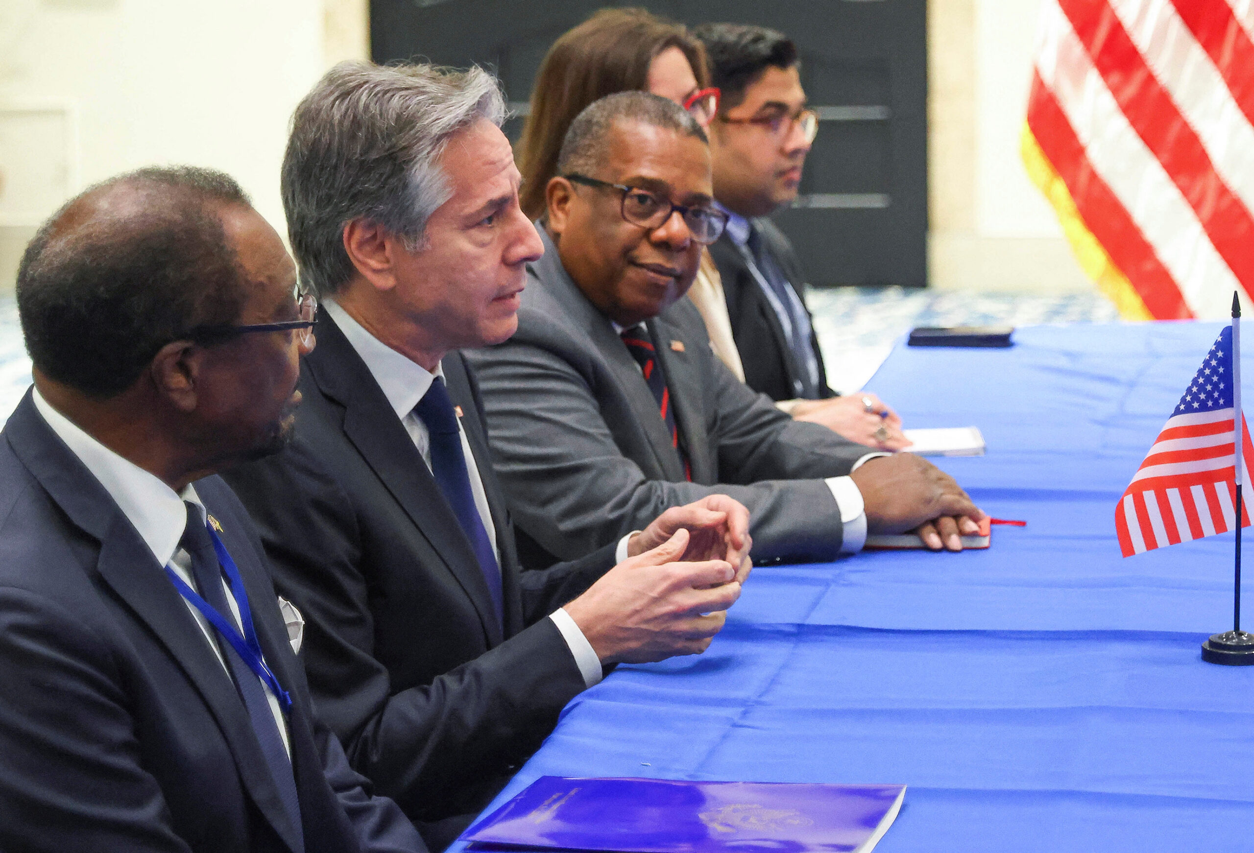 U.S. Secretary of State Antony Blinken looks on as he meets with Jamaican Prime Minister Andrew Holness (not pictured), at the Pegasus Hotel in Kingston, Jamaica, March 11, 2024. REUTERS/Gilbert Bellamy
