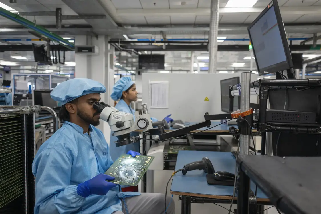 Centum是一家印度本土代工廠商,就像富士康為蘋果代工iPhone一樣。Centum生產用於空對空導彈、叉車和生育檢測儀的電路板。該公司執行董事尼希爾·馬拉瓦拉普(Nikhil Mallavarapu)表示,Centum正在與富士康洽談定制測試設備的合作事宜。