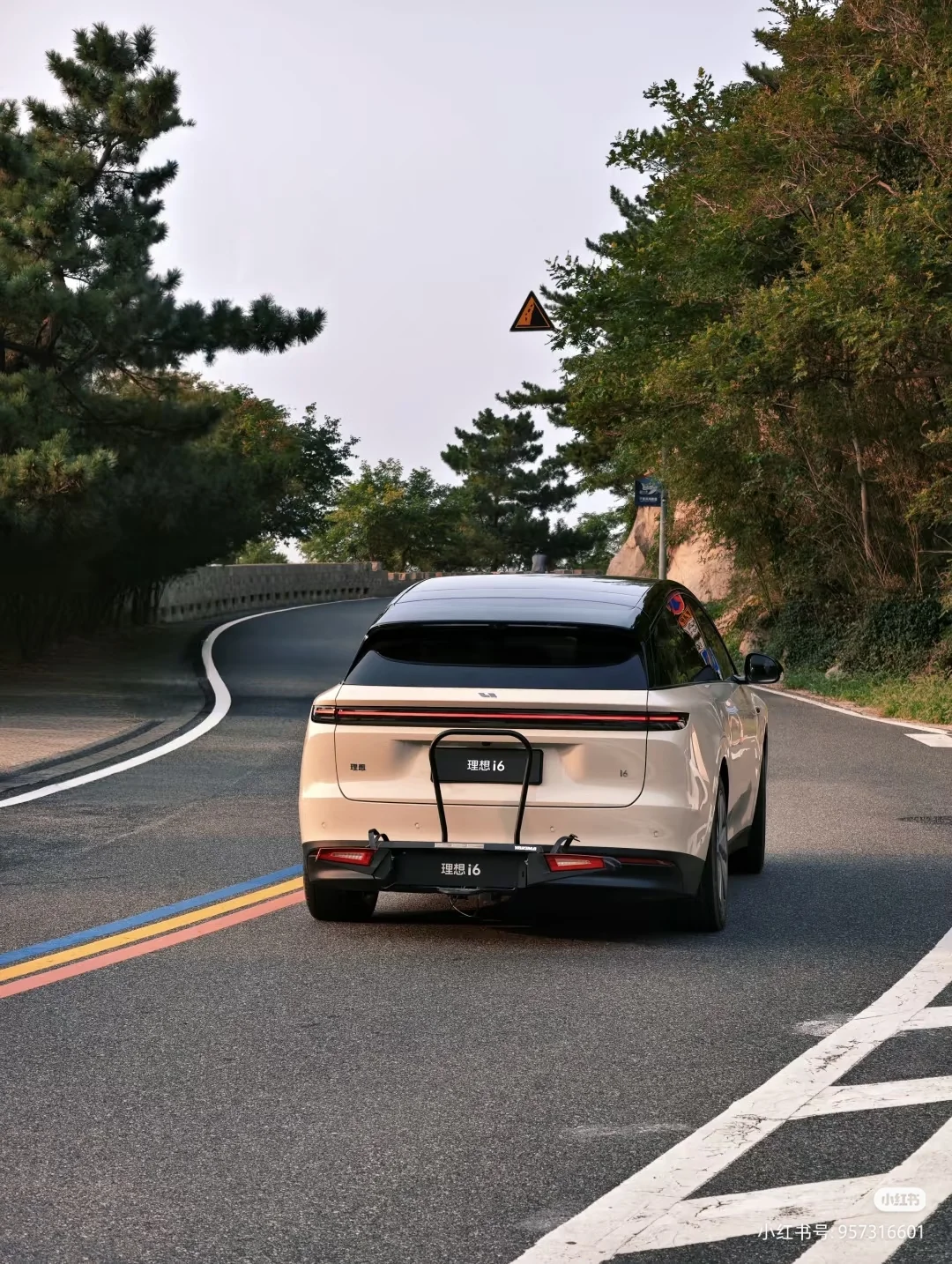 值得一提的是,從車尾角度看,這臺理想i6還提供了一個獨特的配置:自行車支架。