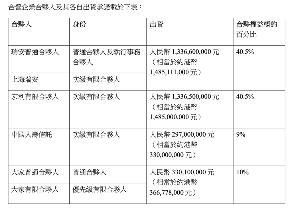 公告顯示,合營企業的經營範圍包括企業管理諮詢及企業管理,總出資承諾額為33.002億元(人民幣,下同)。其中,瑞安普通合夥人及上海瑞安應出資的總出資承諾約為13.366億元。