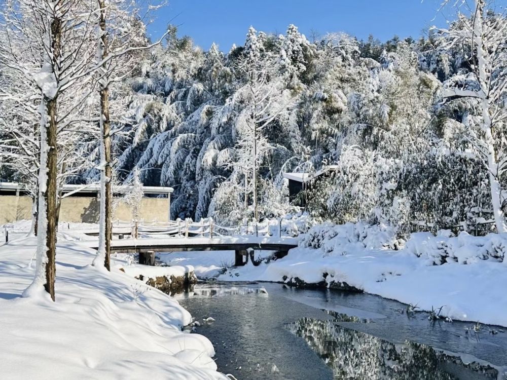 “高品質慢生活幸福小鎮”一一太平鎮,位於中國江西南昌灣裏梅嶺國家森林公園和梅嶺國家重點風景名勝區腹地,距中國江西南昌市中心 40公里。2024年初雪過後,太平鎮一片白雪皚皚、銀裝素裹,宛如童話世界。