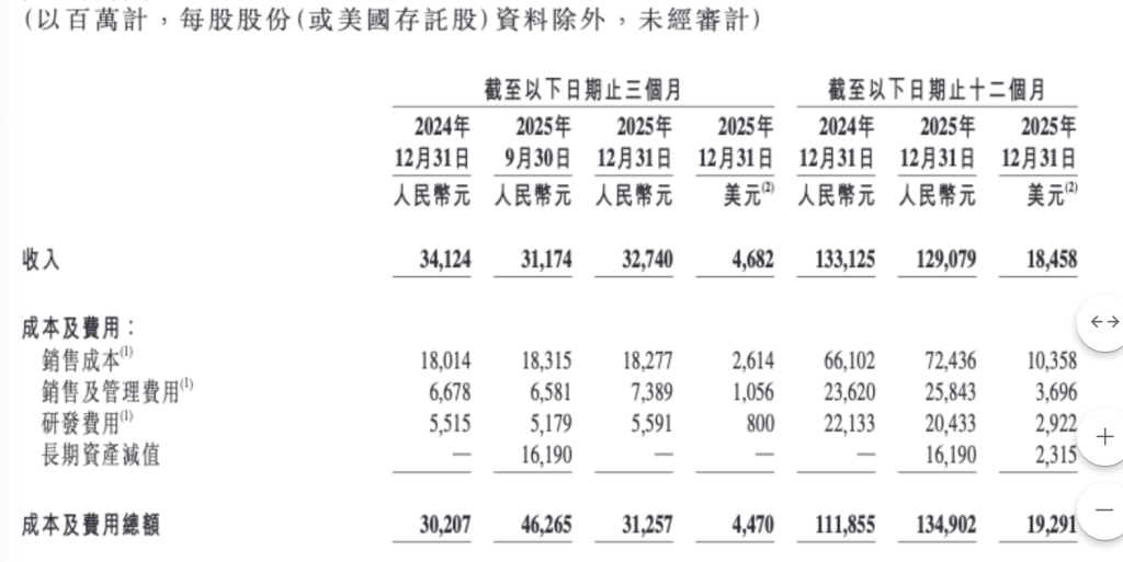 百度2025年第四季度營收及淨利潤雙降,昆侖芯的分拆及獨立上市正在推進中。