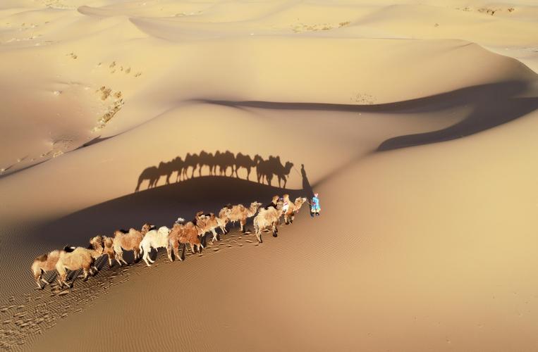 在這裏,你能看到形態各異、複雜多樣的金色沙丘,猶如一座座奇峰聳立於大漠之上,有的如新月般優雅,有的則如金字塔般壯闊,其中更有世界最高的固定沙山——必魯圖峰,海拔高度達1611米,相對高度達460米,有著“沙漠珠穆朗瑪”之稱。