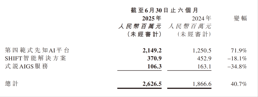 其他業務方面,作為先知AI平臺業務補充的SHIFT智能解決方案收入3.7億元,同比降低18.1%;式說AIGS服務收入1.0億元,同比減少34.8%。