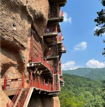 庾信在《秦州天水郡麥積崖佛龕銘並序》中寫到:“……似刻浮檀、如攻水玉,從容滿月,照曜青蓮……載輦疏山,穿龕架嶺……壁累經文,龕重佛影。雕輪月殿,刻鏡花堂。橫鐫石壁,暗鑿山梁……方域芥盡,不變天宮。”可謂生動、形象地描繪了這座凝聚無數能工巧匠智慧和心血的藝術殿堂。