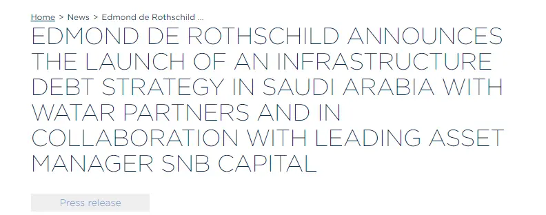 目前,羅斯柴爾德集團正與沙特最大的資產管理公司SNB Capital和獨立金融服務公司Watar Partners合作,在沙特推動基礎設施債務的大發展。