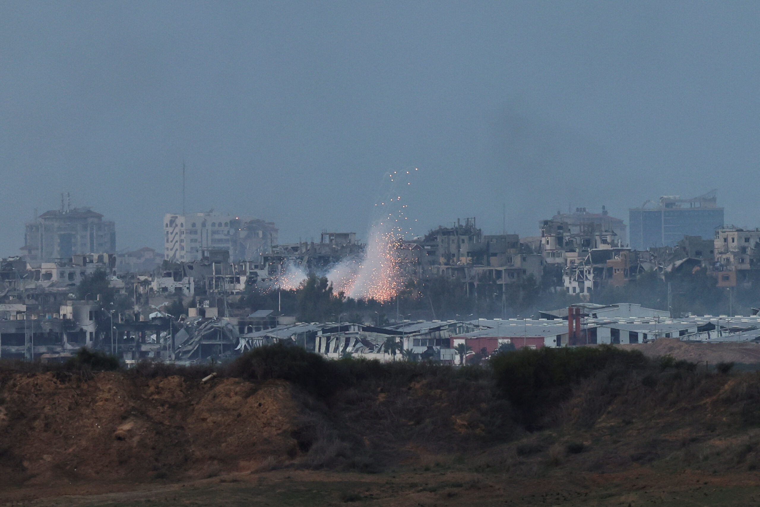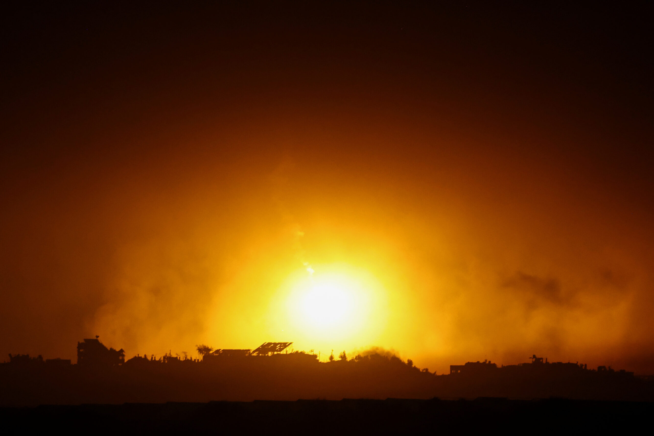 An explosion takes place during Israeli air strikes over Gaza, amid the ongoing conflict between Israel and the Palestinian Islamist group Hamas, as seen from southern Israel, December 7, 2023. REUTERS/Athit Perawongmetha