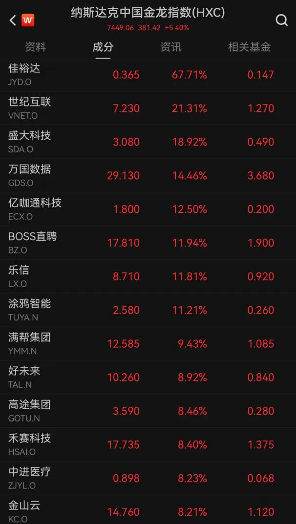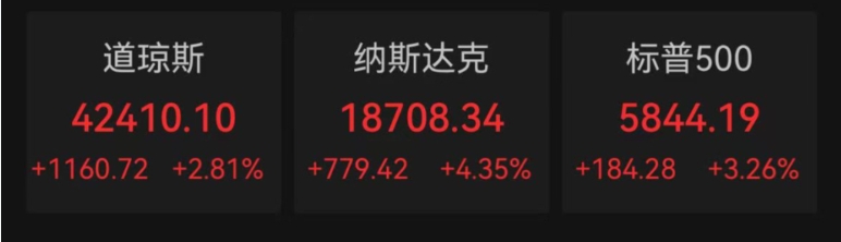 美股全線收漲:道指漲逾千點,納斯達克中國金龍指數漲5.4%