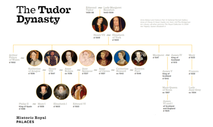 都鐸王朝統治英格蘭王國直到1603年伊莉莎白一世去世為止,歷經118年,共經歷了五代君主。亨利八世是唯一一位活至成年的亨利七世後裔,因此王位繼承一直是都鐸年間的主要政治議題。