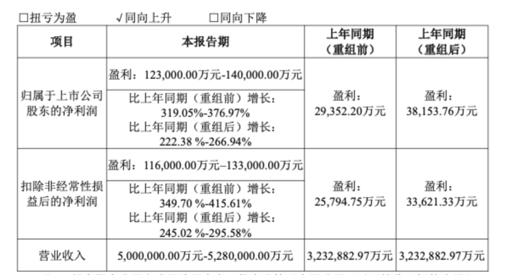 1月29日,福建萬辰食品集團股份有限公司(萬辰集團,300972)發佈2025年度業績預告,歸屬於上市公司股東的淨利潤達12.3億元-14.0億元,同比增長319.05%-376.97%(重組前),或222.38%-266.94%(重組後);扣非淨利潤為11.6億元-13.3億元,同比增長349.70%-415.61%(重組前),或245.02%-295.58%(重組後)。預計2025年的營業收入達500億元-528億元,同比大幅增長54.6%-63.5%。