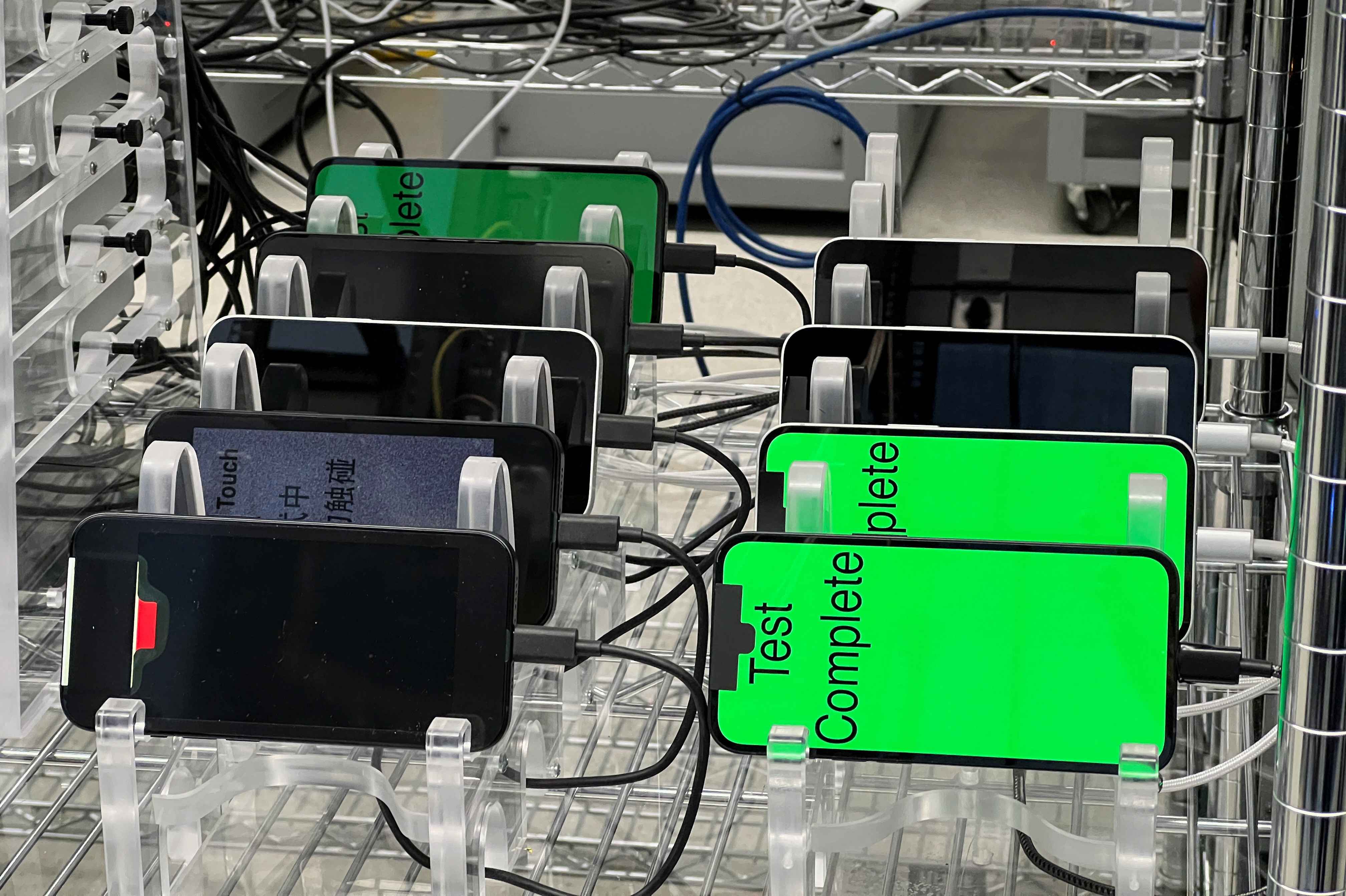 16e 的螢幕頂部有一個凹槽,用於安裝前置攝像頭,而更高級的機型則採用環繞攝像頭的螢幕。