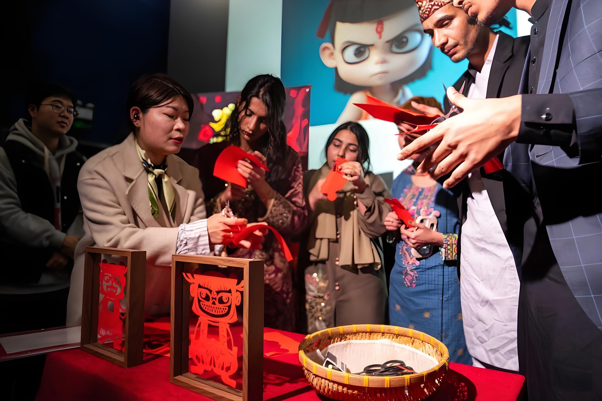 當日,湖南中醫藥大學以電影《哪吒之魔童鬧海》為紐帶,在長沙摩天輪國際影城開展“跟著‘哪吒’看中國”文化研學活動。留學生們觀看電影後,瞭解電影片段中隱藏的中醫藥文化,體驗冰糖葫蘆製作,學習非遺剪紙技藝等,更直觀地感受中國傳統文化。 來源:新華網
