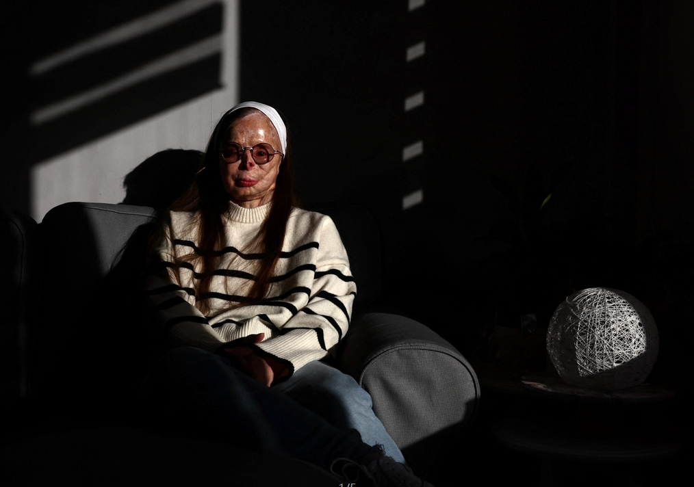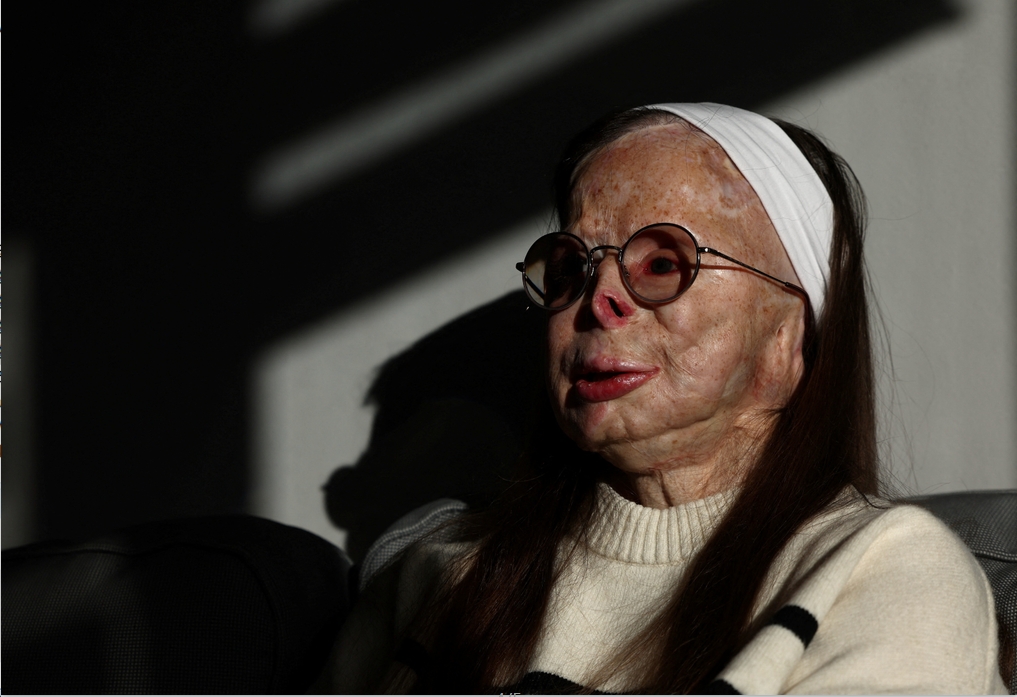 這位三個孩子的母親,臉上和身上佈滿了傷疤,在襲擊後昏迷了三個月,並接受了100多次手術。