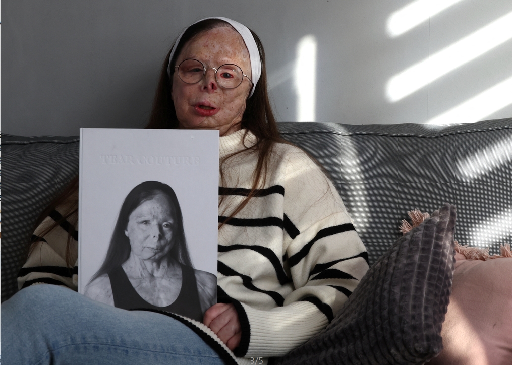 本網綜合 Johnny Cotton報導 坐在比利時尼維爾鎮的家中,酸襲擊倖存者和活動家帕特裏夏·萊弗朗克(Patricia Lefranc)翻閱英國時尚攝影師蘭金(Rankin)為她拍攝的時尚書籍。