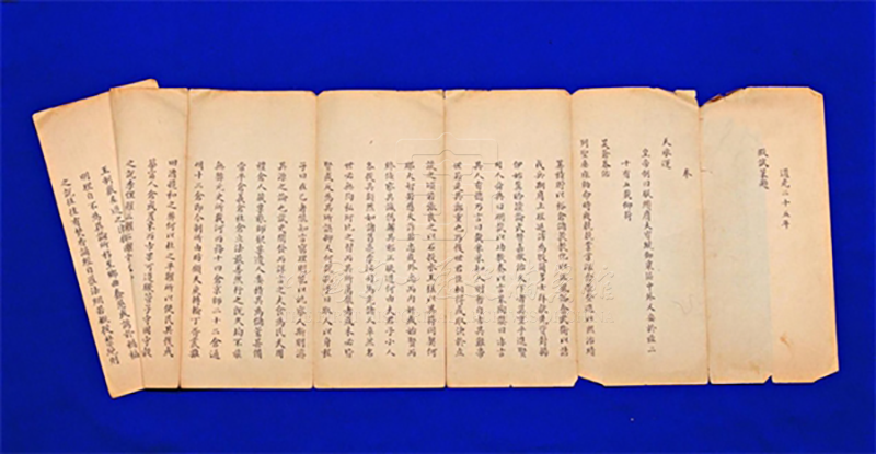 殿試試卷,由七層左右的白宣紙裱糊而成。據《清代科舉考試述錄》記載,清初殿試卷每頁長一尺五寸三分,寬四寸三分強。乾隆四十八年(1783 年),改小為長一尺四寸,寬三寸七分弱。每份試卷都有固定的格式,分為開面、內頁、正文頁及封底四個部分。開面, 應試者填寫姓名。內頁四扣,留給士子寫明年齡、籍貫、中試經歷、三代出身等。正文部分,是試卷的主體,每扣 6 行,每行包括抬頭最多寫 24 字,一共 16 至 18 扣。清代制度,殿試對策最少要達到 1000 字。若要獨佔鰲頭,獲得讀卷官的青睞,應試者的卷面篇幅必須充實,至少得寫滿 15 扣,約 2000 字。封底是試卷的最後一扣,上面印有印卷官的姓名。