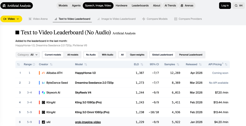 近日,在第三方AI模型測評平臺Artificial Analysis公佈的文生視頻模型榜單Video Arena上,一個由匿名團隊提交、名為HappyHorse-1.0的模型“空降”榜單榜首,超越了位元組跳動旗下Seedance 2.0以及快手旗下可靈3.0等知名產品。
