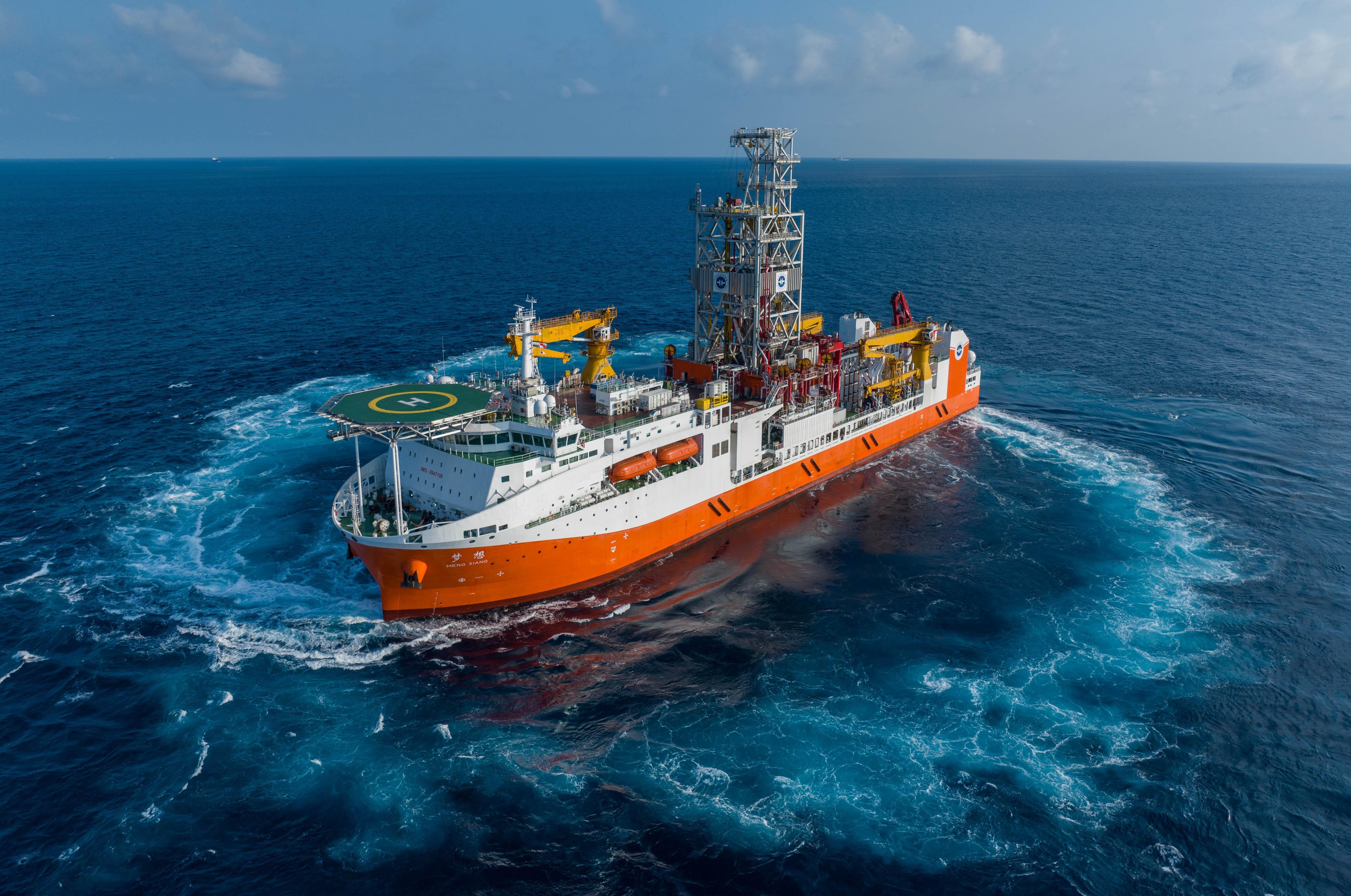 首艘自主設計建造的大洋鑽探船“夢想”號正式入列,具備全球海域無限航區作業能力,最大鑽探深度達11000米。