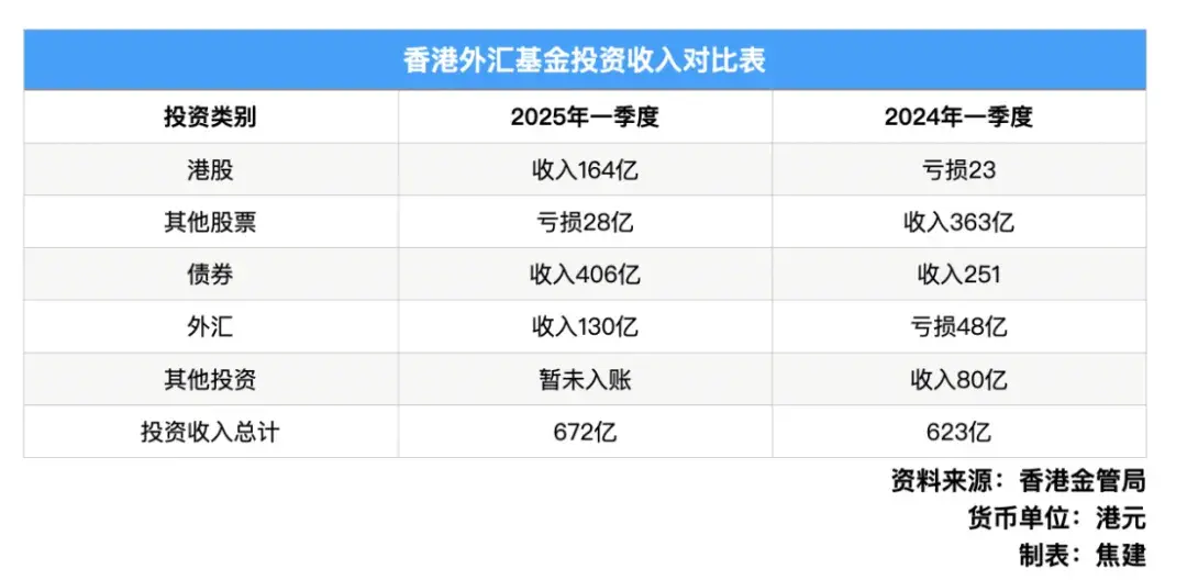 2025年一季度,中國香港特區外匯基金獲得672億港元投資收入,實現扭虧為盈。