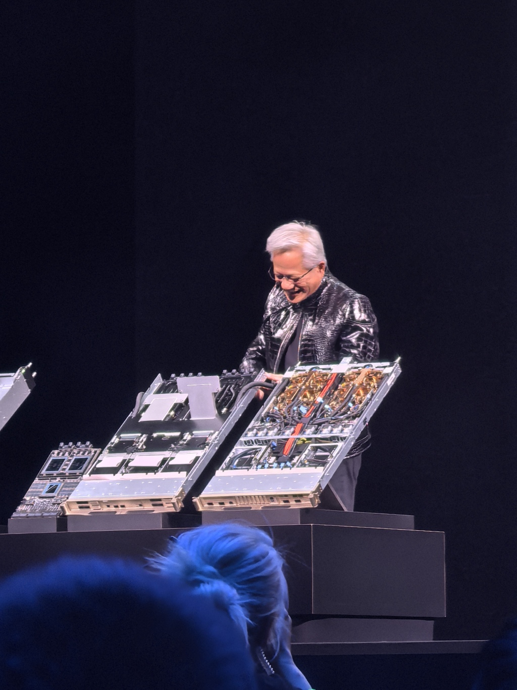 本次演講是CES的一大重頭戲。記者在現場看到,在演講開始的數小時前,觀眾們就已經在會場外排起了長隊。遲到了十幾分鐘後,身穿閃亮黑色夾克的黃仁勳終於來到臺上。