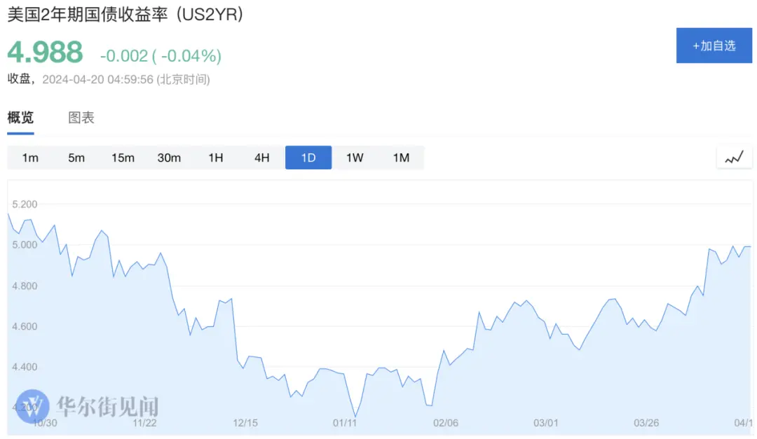 自今年1月以來,兩年期美國國債收益率已經從4.2%上升至4.988%,與去年8月水準相當。