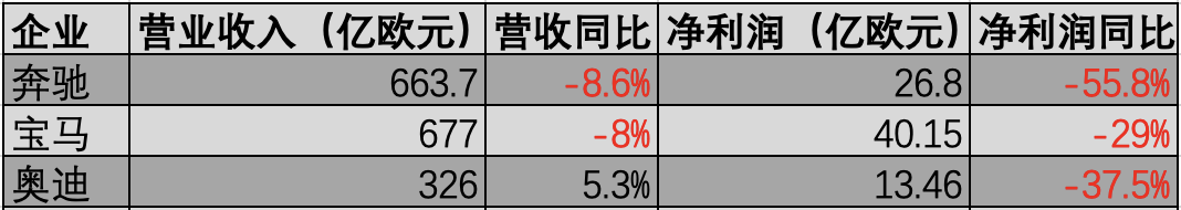 2025年上半年,歐洲三大豪華車企BBA(梅賽德斯-賓士、寶馬、奧迪)的業績均顯著承壓:交付量在部分主要地區出現下滑,營收、利潤明顯回落,即便是最能賺錢的寶馬,淨利潤也下降了近三成,而賓士更是淨利潤腰斬。