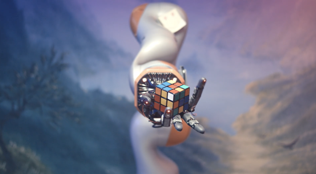 OpenAI在2019年訓練機械臂解魔方的視頻截圖