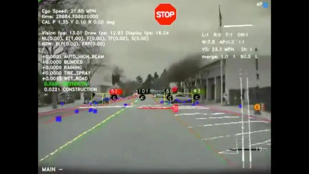 多年來,特斯拉的自動輔助駕駛系統一向採取基於規則的演算法(rule-based approach)。系統由攝像頭採集視覺數據,辨識車道標線、行人、車輛、交通信號等,以及八個攝像頭拍到的視頻資訊。接著,軟體會根據一套規則運行,例如:紅燈亮時要停車,綠燈亮時要開車;保持在車道標線中間;不能跨越雙黃線駛入對向車道;只在其他任何車輛的速度都不足以撞到你時,才通過路口等等。特斯拉工程師手動編寫和更新幾十萬行 C++ 代碼,把這些規則應用在各種複雜情境裏。